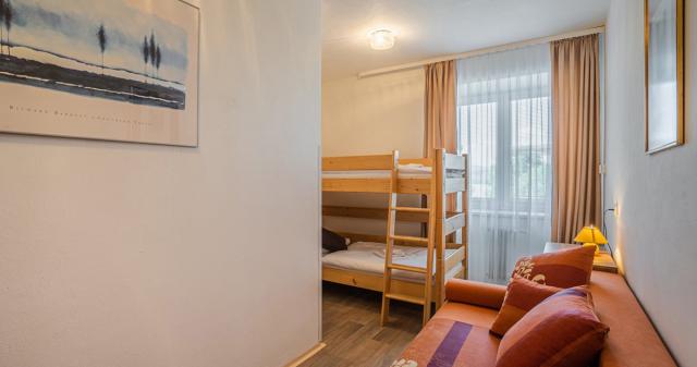 #Family 2+3: 27 m² - pokoj s manželskou postelí či 2 samostatnými lůžky, s možností přistýlky formou rozkládacího gauče pro 1 dítě do 12 let a dále palanda pro až 2 děti do 12 let, sociální zařízení